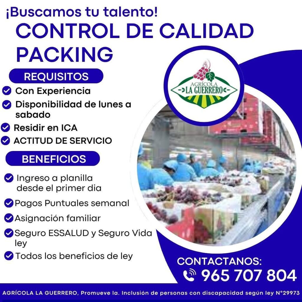 Oportunidad Laboral con Ingreso a Planilla desde el Primer Día en Ica. Agrícola La Guerrero te invita a formar parte…