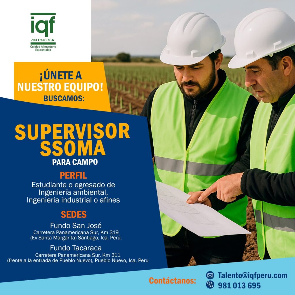 ¡Únete a IQF del Perú! Buscamos Supervisor SSOMA para Campo en Ica