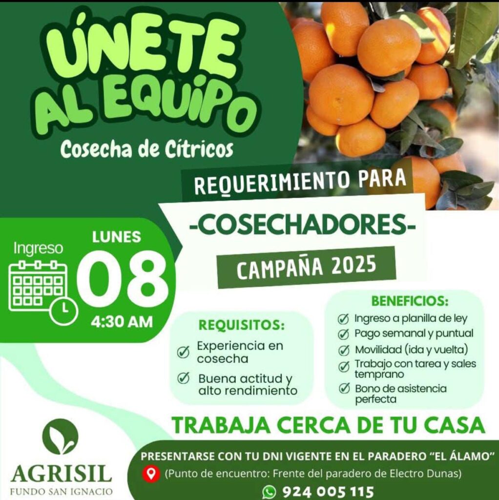 Estamos buscando Cosechadores de Cítricos para nuestra Campaña 2025.