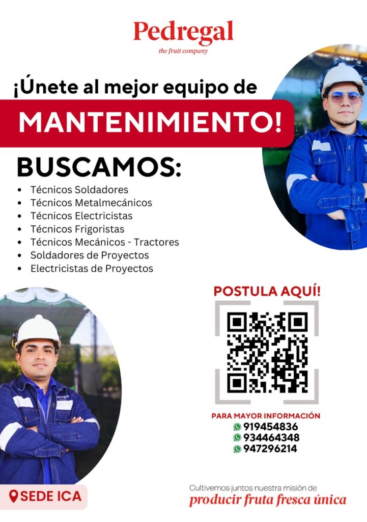 ¡Estamos buscando los mejores talentos para unirse a nuestro equipo de Mantenimiento! Si eres una persona proactiva y buscas un nuevo desafío, esta es tu oportunidad para crecer con nosotros.
