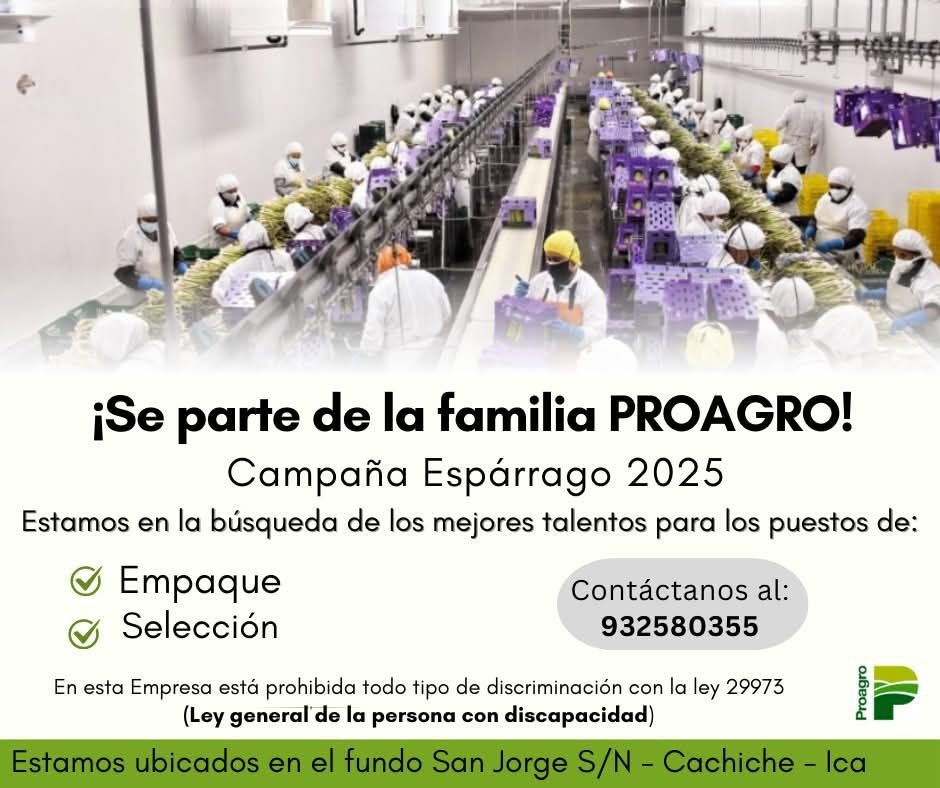 Estamos en búsqueda de personal para la Campaña de Espárrago 2025. Si estás buscando empleo, te invitamos a postular a los siguientes puestos: