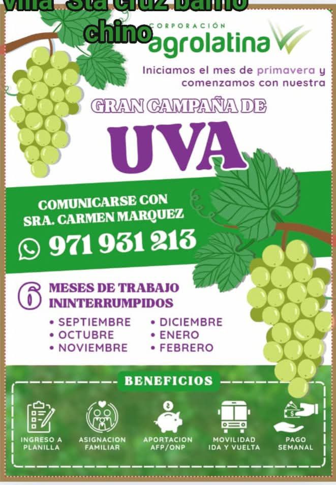 Iniciamos la temporada de primavera con una gran campaña de uva y te invitamos a ser parte de nuestro equipo.