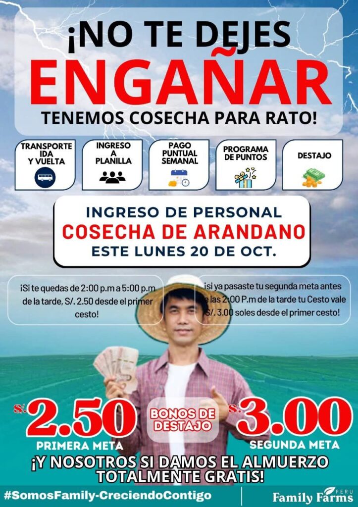 ¡NO TE DEJES ENGAÑAR! En Family Farms valoramos tu esfuerzo y te ofrecemos una oportunidad de trabajo con transparencia, pagos puntuales y COSECHA PARA RATO.