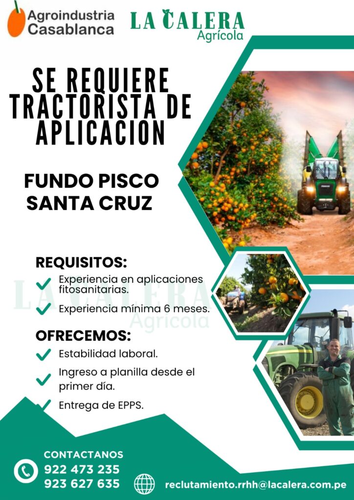 #Tractorista #Agroindustria #LaCalera #Pisco #OportunidadLaboral